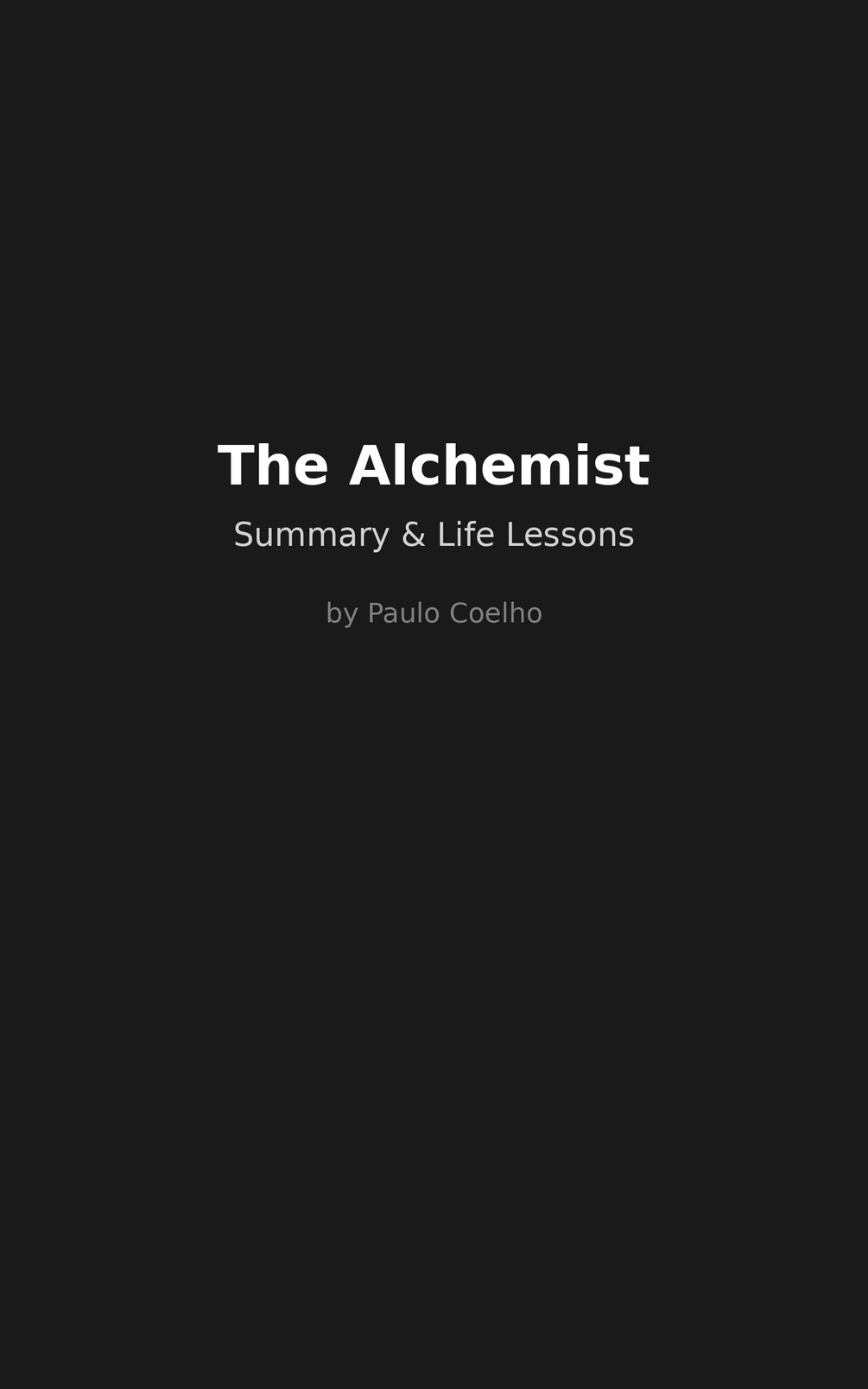 This beautifully summarizes Paulo Coelho’s best-selling novel The Alchemist in a clear and inspiring way — ideal for busy readers who want to absorb the core messages in under 10 minutes.